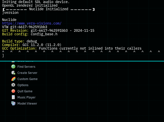 Which may be useful in determining which engine version you are using, in case you need to file bug reports with the engine. Make sure to attach a copy of your engine build config if you happen to use one.