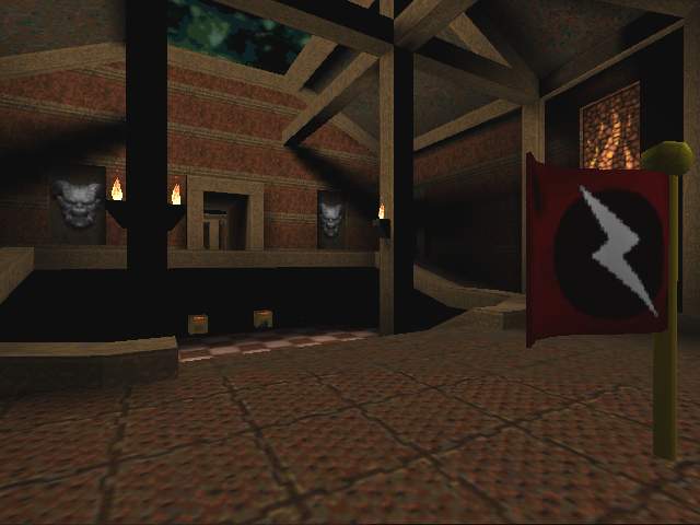 The Rules1. Two areas of the map are designated as base encampments.2. When you join the game (or enter the level) you are assigned to a team. Depending on the configuration of the server, you may change teams; if you are allowed to change, you will lose your frag count when changing. You are spawned at your team's base. If you die, you are not spawned at the base, but at one of the deathmatch start spots. This way, you don't kill a guy defending his the flag at the enemy base and he comes back to life immediately there. 3. The flags are based on the medieval key models. If you pick up the enemy flag, you must return to base and touch your flag in order to score. Note that if you get back to the base, your flag might not be there if the other team has it! Get the rest of your team to go frag the enemy player and get your flag back! 4. When a player carrying the enemy flag touches his flag he will complete a successful capture. He gets a bonus of 15 points. Everyone else on his team gets 10 points. 5. If you kill an opposing team player who has your flag he drops it. You also get 2 points. If you touch your flag, it will teleport back to your base. You also get 1 point as a recovery bonus. This gives base defenders a reward for guarding their flag. 6. Since everyone starts at their base after level change, or joining the game, the team will have to work out who is going to go offensive and try to get the enemy flag, and who will play defense by staying at base and guarding the flag. Yes, this is camping, but its camping with a cause! 7. You can communicate only with teammates by using messagemode2. Put this in your id1\autoexec.cfg file: bind r "messagemode2" And then whenever you need to talk to your teammates, hit 'r' taken from the official website Screens