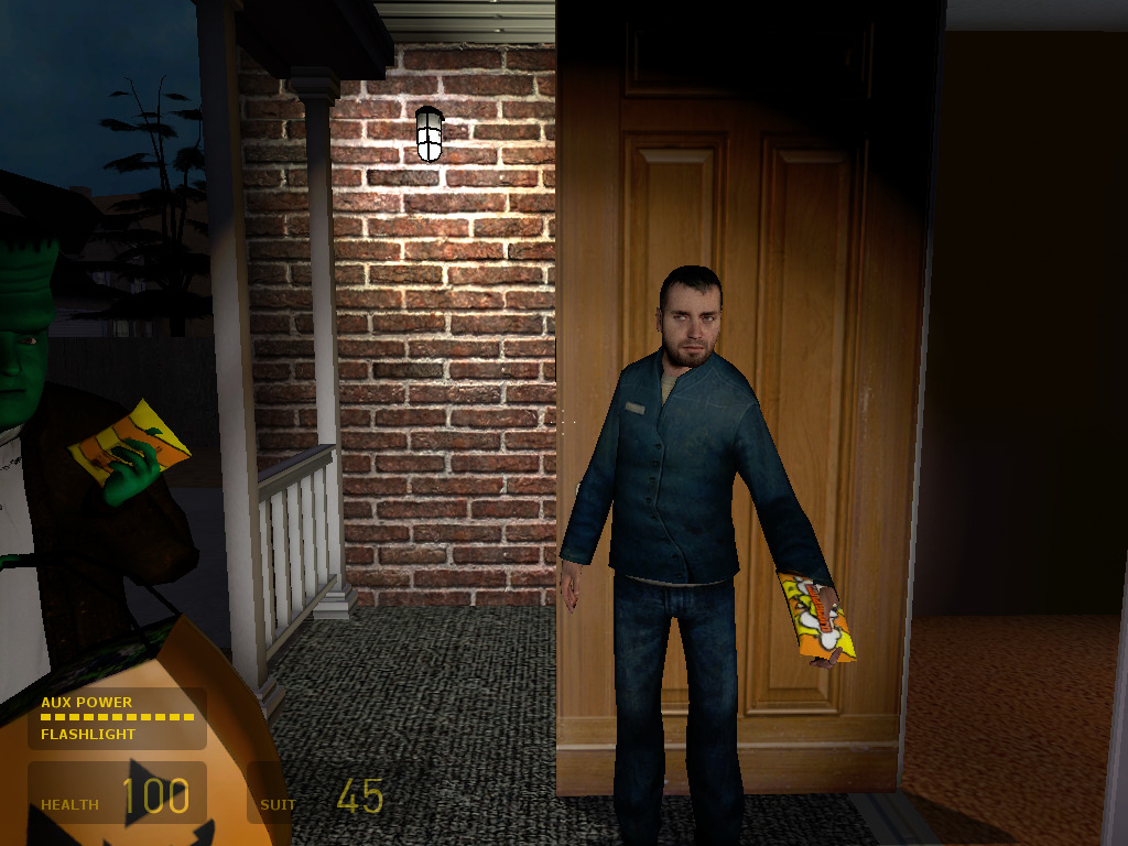 Reflection: A Swiss Cheese Halloween Pt. 2Published on the 31st of October 2023, Edited on the 2nd of November 2023 Author: Swiss_Cheese9797 and friends Date: October, 2005 Homepages: http://www.r-ben.com/~halloween https://www.moddb.com/mods/halloween-2005 Download: https://archive.org/details/pumpkin-night Preamble:Be sure to read part 1 if you haven’t already! Sorry to interject this before we get to the mod and I’m also sorry for the delay. I’ve come to believe that the curse in Swiss Cheese Halloween/Pumpkin Night is real and I’ve been suffering through it the last few years trying to play this mod. For starters, I use Linux/BSD, so I have to use Wine to even play this mod, and the last couple years the mod has been really crash prone with recent versions of Wine. Using an old version of Wine did make SCH run more or less stable, but I could not get Pumpkin Night to run. I tried an older copy of HL2, I tried Steam with proton, nothing. I also tried putting it on my Steam Deck and I regret that because Anachronox (which runs through Proton) then broke and the mod still didn’t load. Argh! So in order to do this right, and to avoid this in future, and to aid our archiving efforts, my friends, partner, and I setup an older 2000s PC we found near our apartment’s dumpster. With a mostly updated copy of Windows 7 and stable older drivers installed (I hope), we have frozen this machine in time to archive and play these gems from the past. Behold in awe of what I dub, The Hot Rod PC. My current setup for older mods. I swear on my life tower this did not belong to any of us. So keep in mind, I decided to play this on an older copy of Half-Life 2, one from 2006 since there are apparent issues with the version of Source SDK on Steam thanks to Steampipe. There was also something else completely unrelated that happened, something sad and urgent, but we will talk about that on this site in the very near future. For now, I apologize again for the delay of my stupid little article on this silly little mod. Enjoy! IntroAfter creating the charming cult classic, Swiss Cheese unleashed upon the world a sequel (or perhaps reboot?) called, “Pumpkin Night”. Serving as a demo for a much larger project that sadly never seems to have come to fruition. The mod came out October 2005, a fairly impressive feat considering the Source SDK had (officially) only just released back in December 2004, a mere 9 months to learn a new engine, make higher quality content, and release. This includes new models, textures, levels, voice acting, etc. Considering how simple Swiss Cheese Halloween was, this is really a step-up from the previous effort, especially given the era it was created. It seems a year afterwords, he made a “Redux” version, and I hate to spoil the article for you, but that version is leagues better than the 2005 version, which is why I’m talking about both. What was my personal back story with the mod? Well as you may have read in the Swiss Cheese Halloween reflection, my father installed Swiss Cheese Halloween and we both loved it. Since this was 2003? (it’s been a long time and memory is fuzzy), Half-Life 2 had still not yet been released, yet Swiss Cheese had already been teasing he was going to make some kind of HL2 sequel. He even released a really well done wallpaper hyping up the project with an eager release dated of “2004”. For those that don’t know, HL2 never released in 2003 as planned, but if it had, Pumpkin Night probably would have came out that year as promised. My father and I even made an edit, where we crossed off the year to “2005”. We sadly never played or saw Pumpkin Night somehow, but my silly edit was actually correct as it did release that year. I finally found and played PN just a couple years later, perhaps it was 2007, and I was blown away but admittedly disappointed to learn that we could have, but that more never came. I also never played the Redux 2006 version, only the 2005 version due to the very confusing ModDB page. So I played Redux for the first time this Halloween, and I thought, why not play and talk about both! Yes, I did this silly little edit in PaintShop Pro as a child. You can click here to see Swiss_Cheese’s awesome original wallpaper. Suiting UpFirst we’ll talk about the original 2005 release of Pumpkin Night. Where do we start? The story is mostly beat for beat from the first mod, though this time it’s vastly improved in terms of actually conveying it. We again start off with our now more believable teenaged cast, who are actually voice acted this time. You play as Sean and are with your friend Toby (from the first game, but didn’t have a name), who are going trick or treating. Well, Toby had already gone, much to the dismay of Sean. After going Trick or Treating together, which we actually can do this time around, Toby suggests we grab his bat at his house, and upon finding it leads to amusing exchange where Sean expresses his desire to own Toby’s skateboard (a possible call back to Swiss Cheese Halloween 1.0 which had a Skateboard). Toby’s only response to this is “When pumpkins fly out of my ass!”. Shortly after, Sean shares that he’s getting bored and mentions that you two should check out an old creepy abandoned house nearby called the, “Murder House”. Seem familar? Frankenstein’s monster, or in this case, Frakenstein’s friend. Toby is apprehensive but chugs along until a mysterious figure briefly appears on your way, causing Toby to run away. Undeterred while making a fat joke about your friend, you press forward eventually finding the abandoned farm house. Inside we can see someone was killed here, making it clear why the house earned its reputation. It’s also very clear something strange was going on here, with the attic left locked but holding clues. Being curious, and perhaps wanting to prove your bravery while having nothing better to do, you break-in, and your life changes forever... Trick